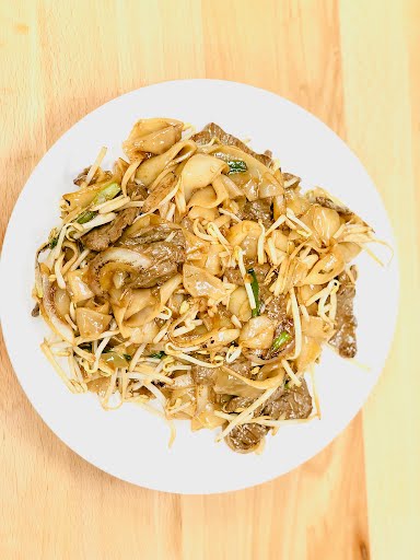 Egg Noodles stir fried with a mix of bean sprouts, broccoli, onions, carrots, napa, scallions, and choice of protein